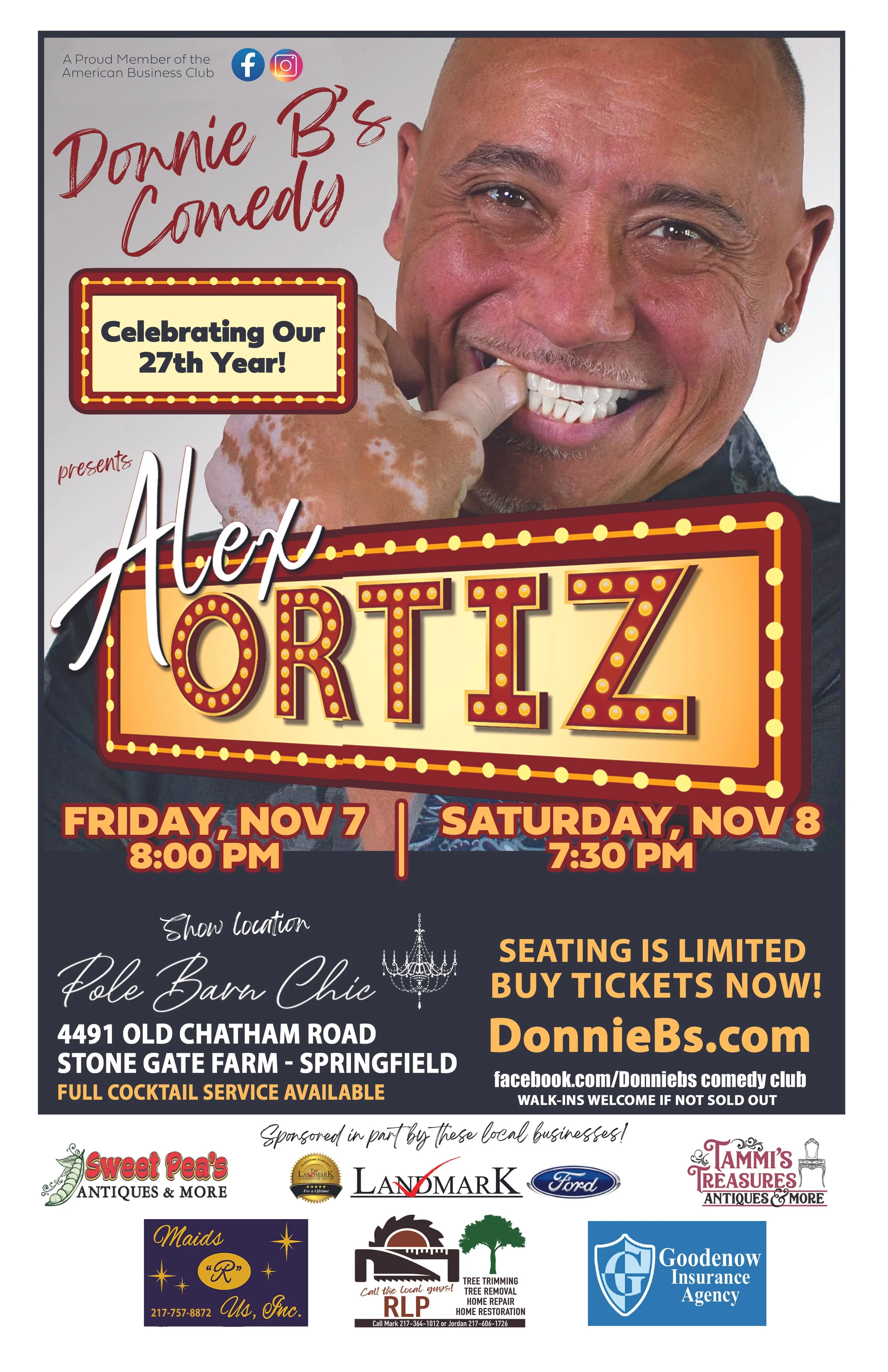 WE HAVE ANOTHER GREAT WEEKEND OF COMEDY LINED UP FOR YOU - ALEX ORTIZ. ALEX WILL HAVE YOU LAUGHING FROM START TO FINISH. DO MISS THIS GREAT WEEKEND OF LAUGHTER AND FUN.
